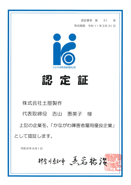 | 令和8年04月01日 | 「かながわ障害者雇用優良企業」に認証されました。 |
